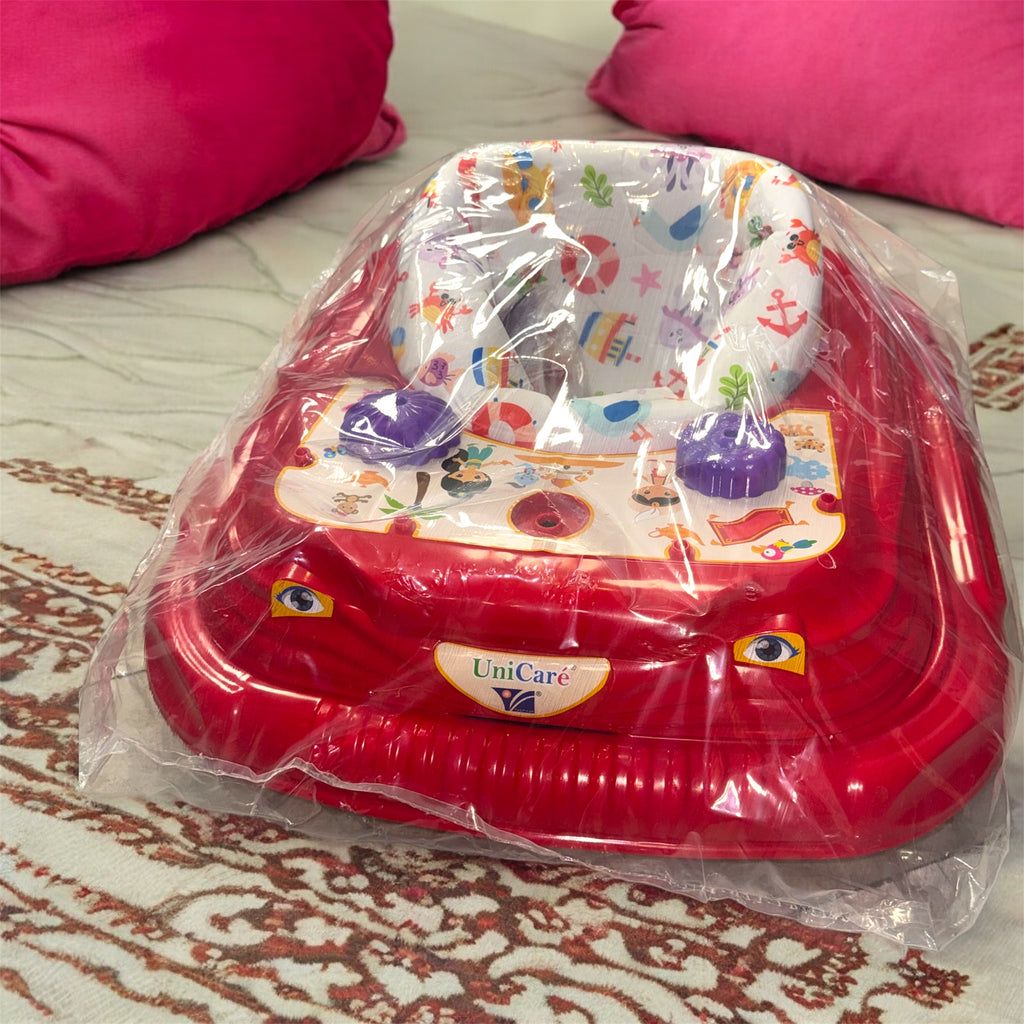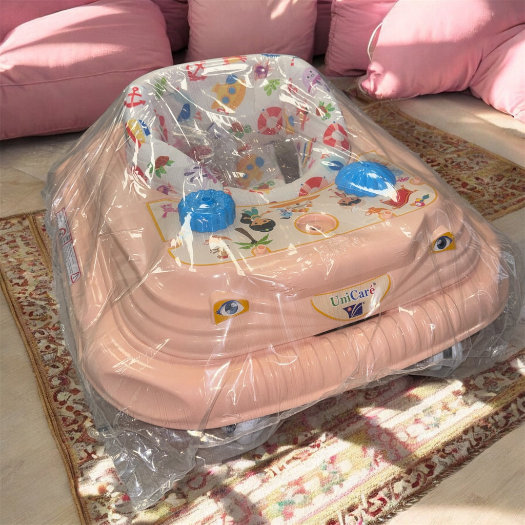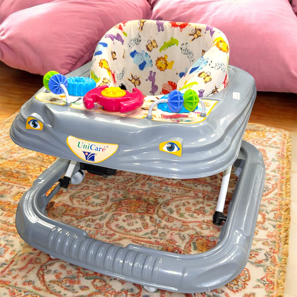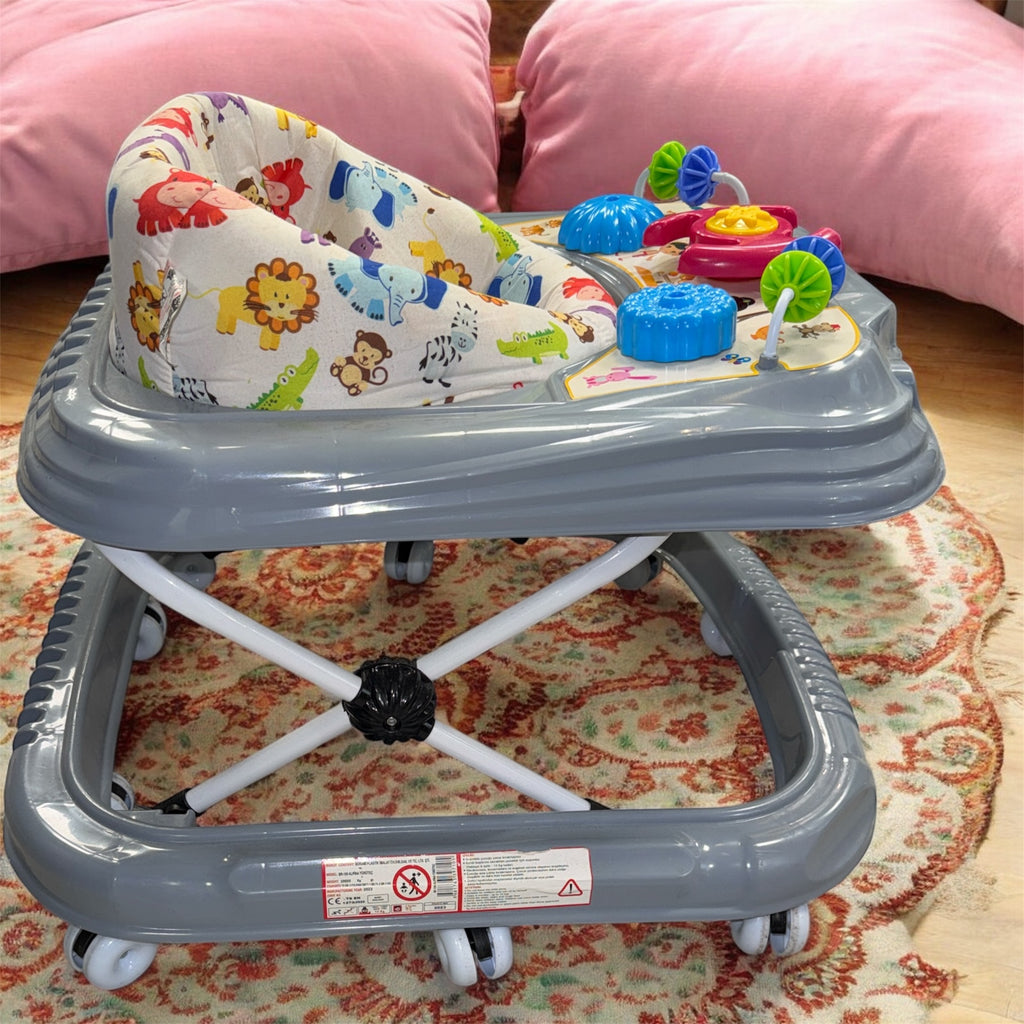 Lauflernhilfe für Kinder ab 6 Monaten, kompakt faltbar und platzsparend zu verstauen Maximalgewicht 12 kg, 3fach verstellbare Höhenfunktion Spielcenter mit 3 Spielzeugen, Musik und Licht bequeme Sitzeinheit mit gepolsterter Rückenlehne 8 Räder und 8 Stopper für Sicherheit an Treppen Die Lauflernhilfe Jungle Fun von Moni ist für Kinder ab 6 Monaten und einem Maximalgewicht von 12 Kilogramm geeignet. Es kann darin sitzen und die Welt um sich herum aus einer anderen Perspektive entdecken. Der praktische Spielcenter ist mit 3 Spielzeugen, 5 Knöpfen für Melodien und Lichtanzeige ausgestattet. Er bietet Ihrem Kind die Möglichkeit, verschiedene Formen, Farben und auch Melodien zu entdecken. Für mehr Sicherheit und Flexibilität ist der Walker mit 8 Rädern und 8 Gummi-Stoppern ausgestattet. Diese sorgen für mehr Sicherheit an Treppen und steilem Gelände. Bei Nichtgebrauch lässt sich der Lauflernwagen zusammenfalten und platzsparend aufbewahren.